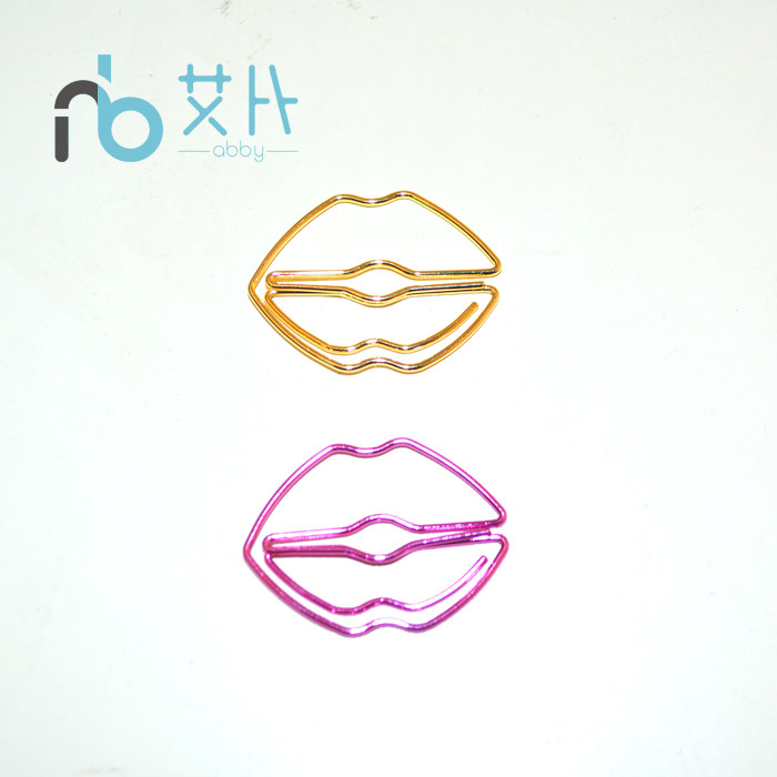 Metal Color Lips Paper Clip Creative Cute Office Supplies Paper Clip Bookmark Shaped Backline Needle Stationery