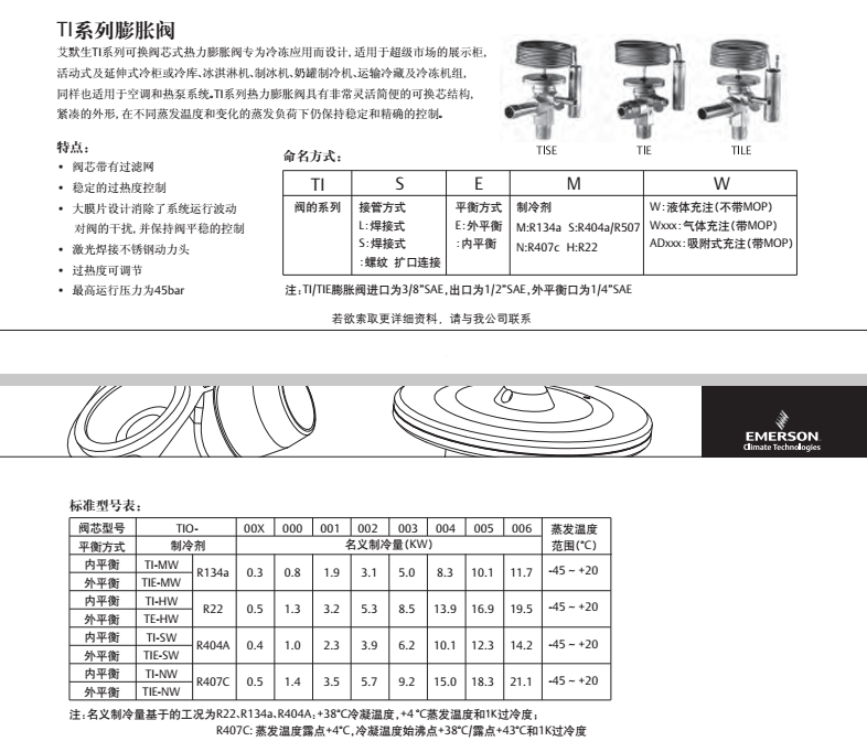 Original ALCO Emerson external balance thermal expansion valve TIE-SW expansion valve R404A with valve core TIE-SW