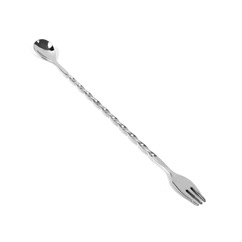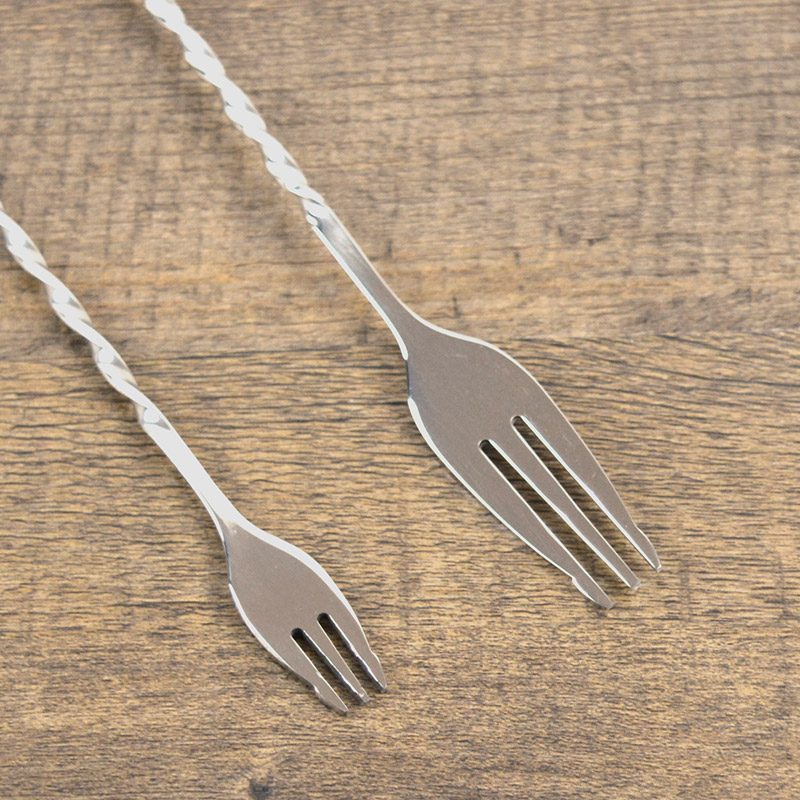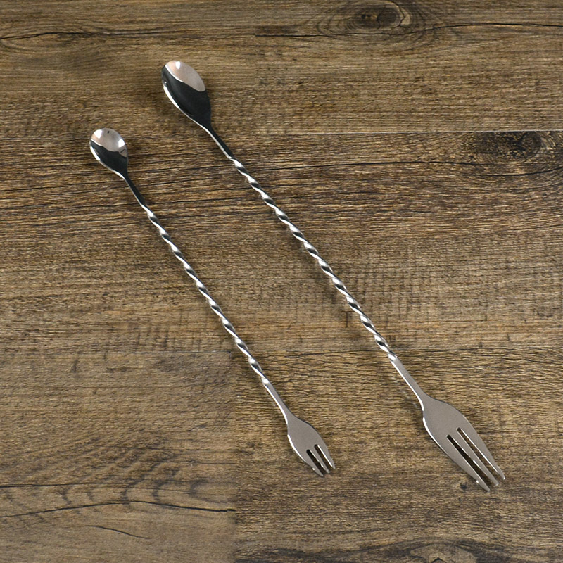 Delicate stainless steel long handle stirring stick cocktail coffee milk tea stirring spoonful of wine bar with double head fork spoons