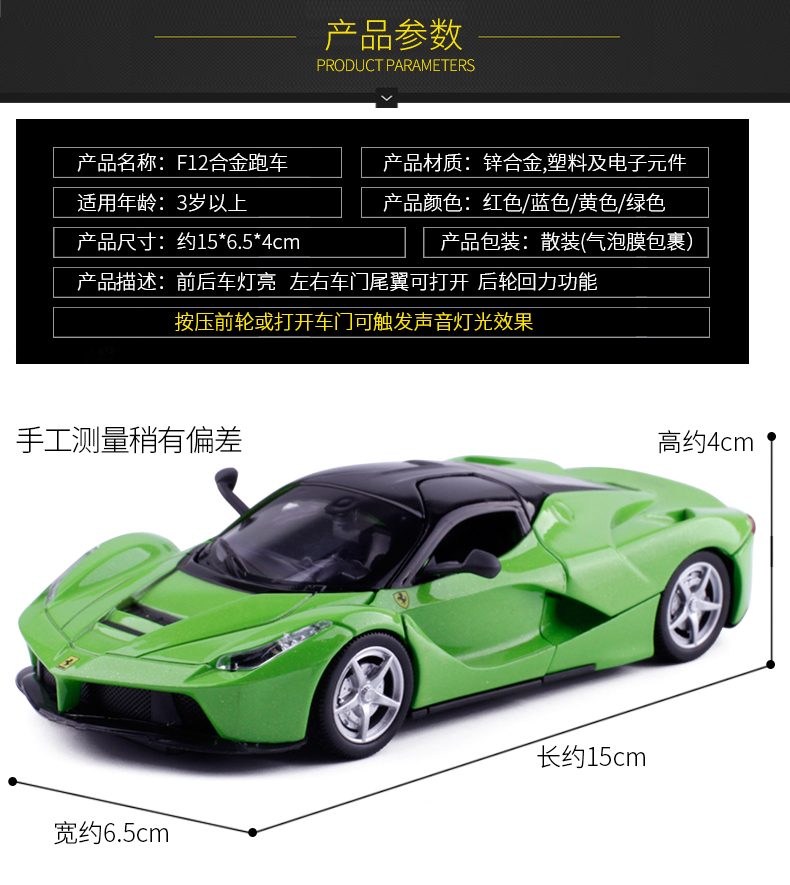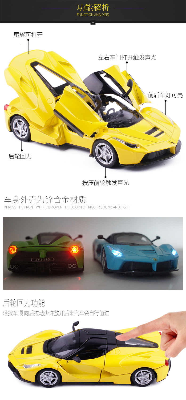 1:32 emulation FFL small car model toy sound and light back force pull up three doors 32161