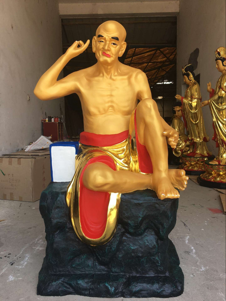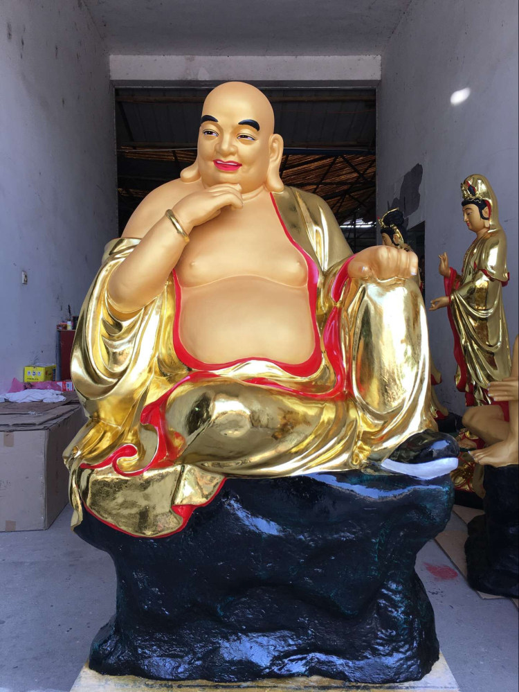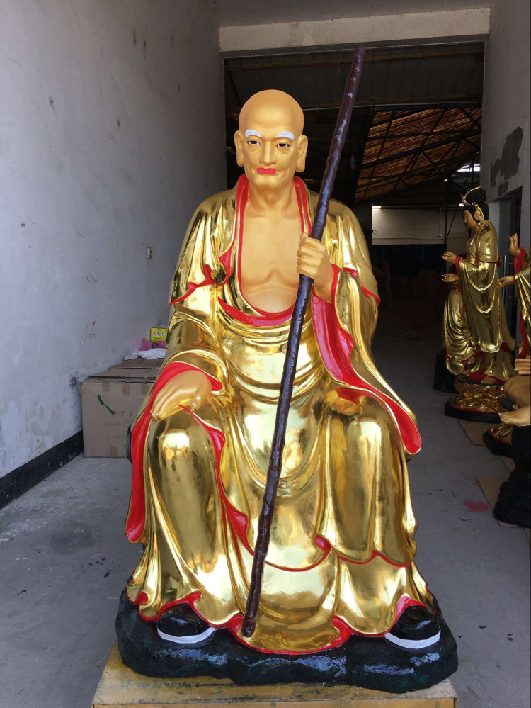 Manufacturer direct sale Buddha statue resin fiberglass Buddha statue Buddha gold color drawing 1 m 6 8 Rohan stick gold sitting Rohan