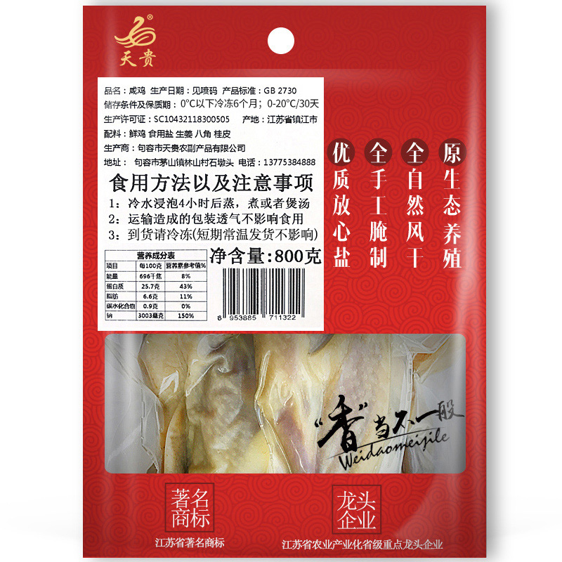 Tiangui air-dried chicken Salty chicken Salty grass chicken farm chicken marinated chicken wind chicken 800g bacon bacon bacon bacon