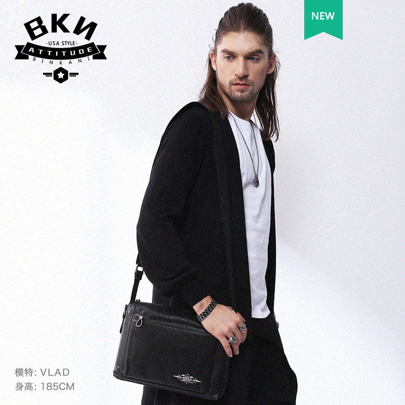 French Binkani shoulder bag men's leather large-capacity backpack messenger bag first layer cowhide men's business casual trend