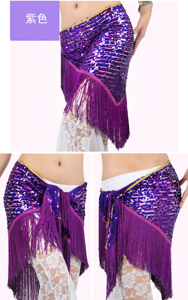 New belly dance bright sheet Triangular Towel Long Flow Su Waist Towel Melon piece Hip Towel Belly Leather Dance Waist Seal Waist Chain