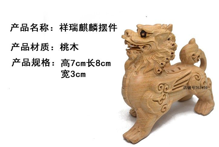 Feicheng peach wood to help transport auspicious unicorn ornaments handle pieces home creative crafts gifts ornaments gift ornaments