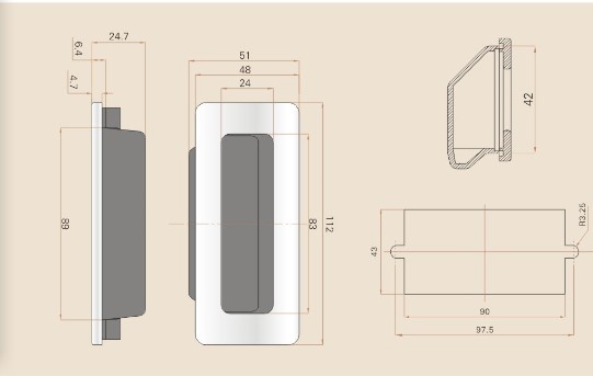 Summer middle industrial hardware handle zinc alloy embedded pull hand buckle flashlight gas cabinet handle LS533-8-9