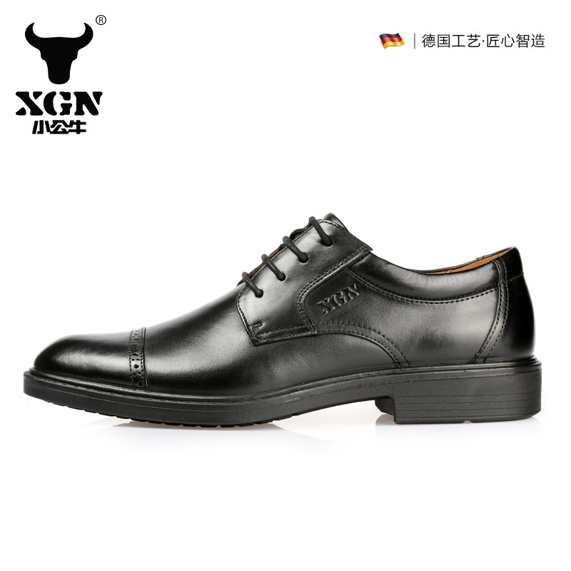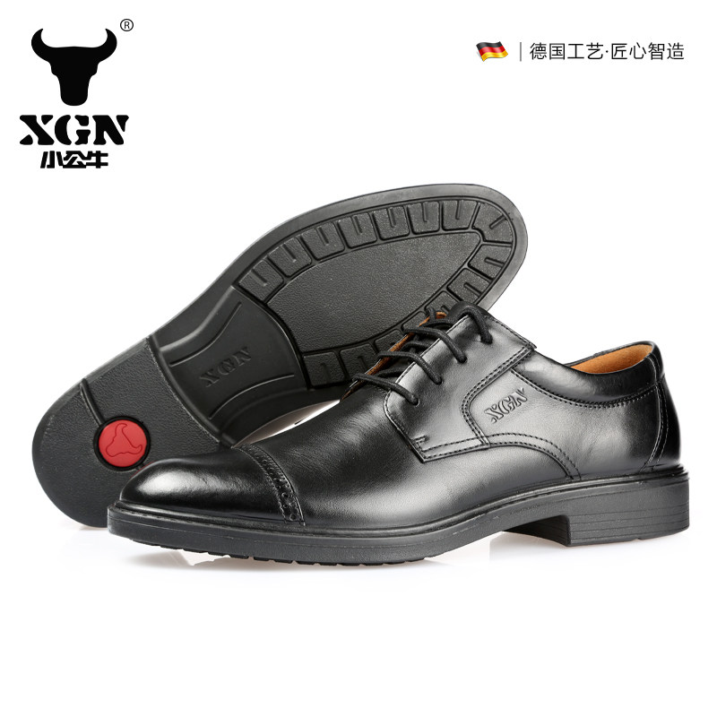 XGN Small Bull Bull Lacing Breathable Business Positive Dress Shoe Male Head Layer Bull Leather Abrasion Resistant Pointed Yingren Casual Leather Shoes Man