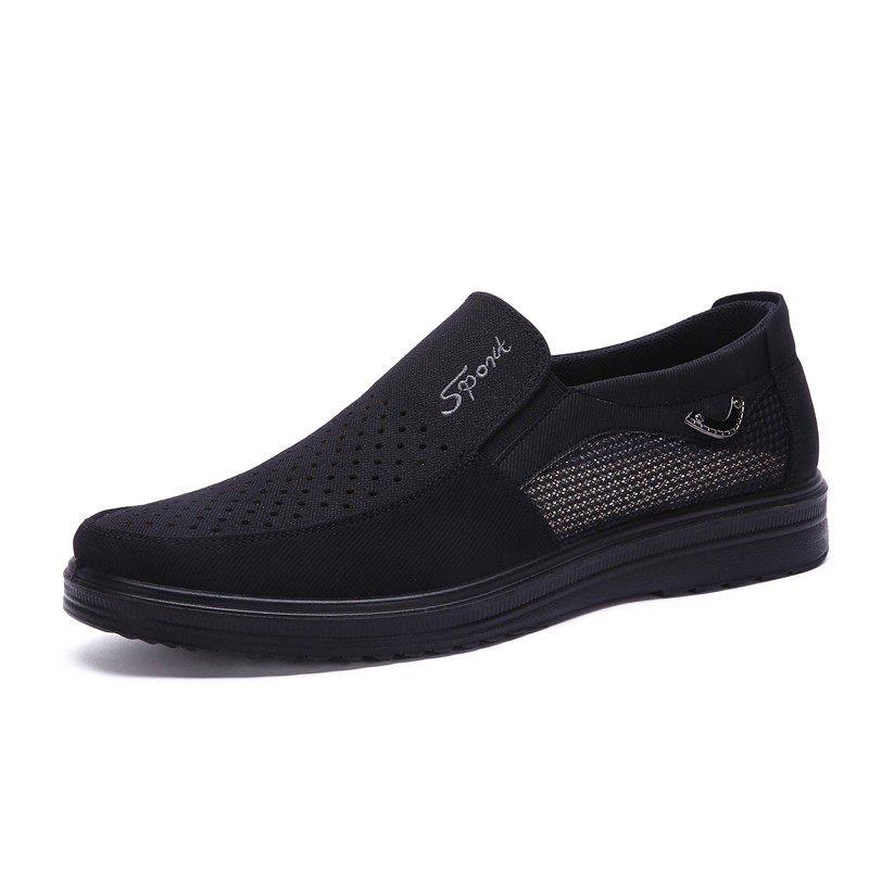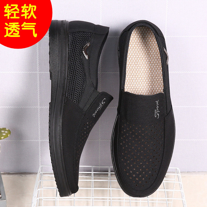 Old Beijing Cloth Shoes Men Sandals Summer Breathable Black Mesh Shoes Large Size 4546 Mid Aged Mesh Breathable Dad Shoes