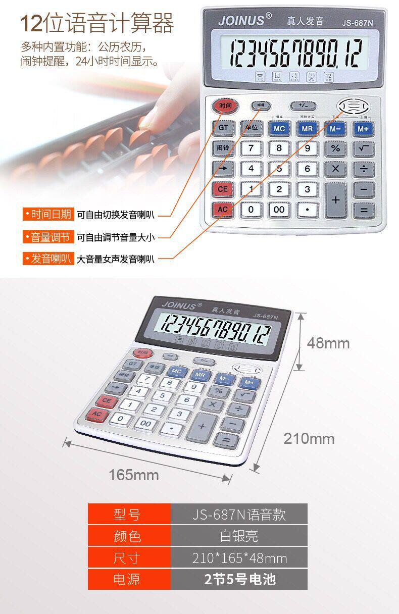 () crowdsourced JS-687N business office 12 voice electronic calculator transparent key