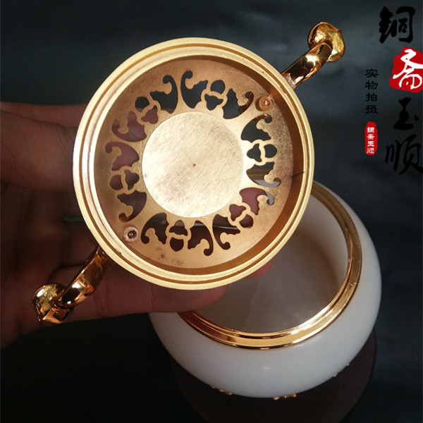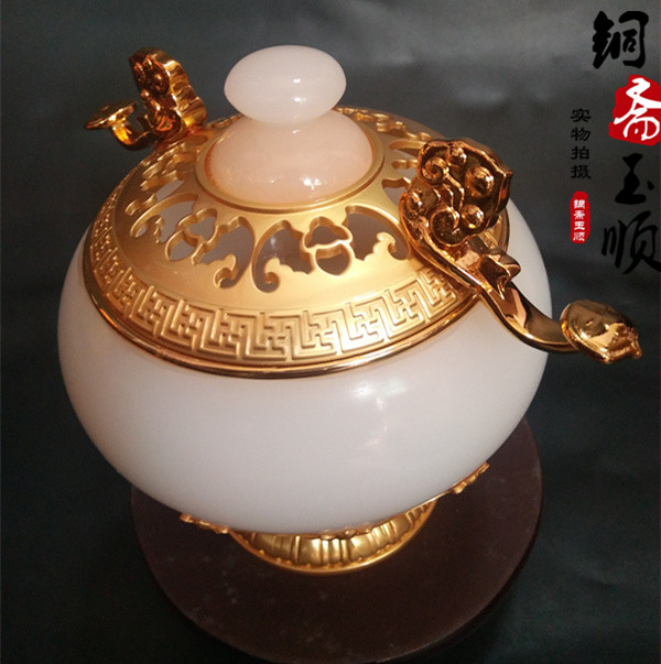 White Jade Gold Inlaid Jade Jade Ruyi Jade Ruyi Bronze Incense Stove Imitation Ancient Lavender Incense Stove Fragrant Seal Stove Incense sandalwood Incense Tray Incense Stove