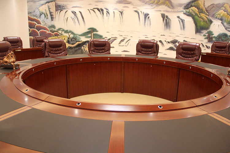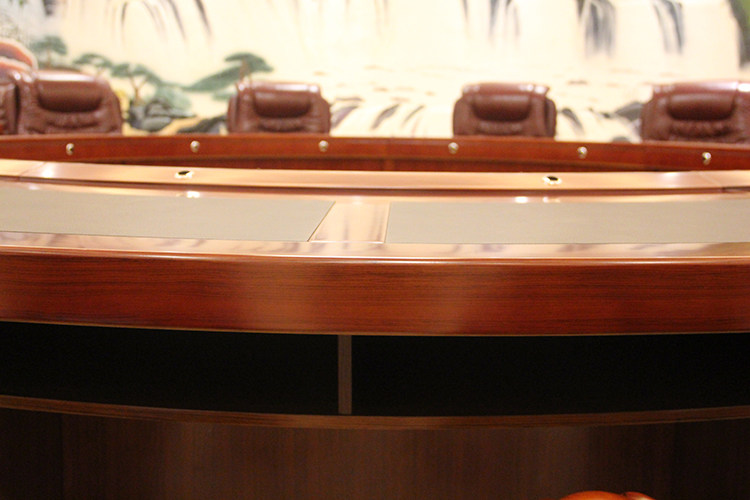 Office Furniture Round Bilayer Solid Wood Leather Conference Table Arc Chinese Style Guest Table Composition Paint Business Meeting Table