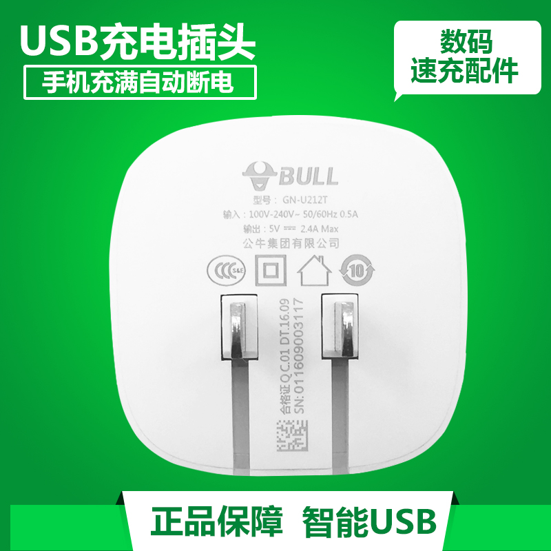 Bull (BULL) GN-U212T TN anti-overcharge charger plug full of automatic power cut double USB2 4A