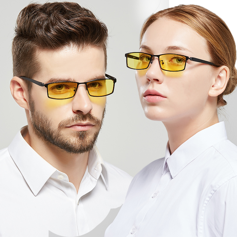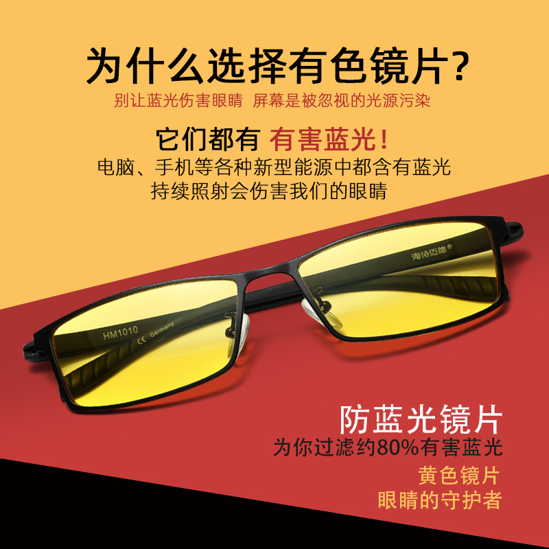 Hishimed anti-blue light yellow glasses Lenovo cooperation alloy frame TR90 black square men's and women's goggles