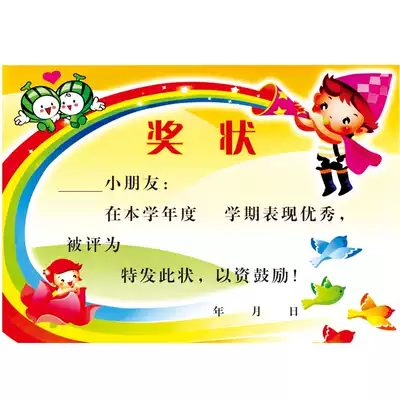 A4 certificate paper Kindergarten cartoon small certificate praise letter wholesale primary school student certificate paper can be customized and printed