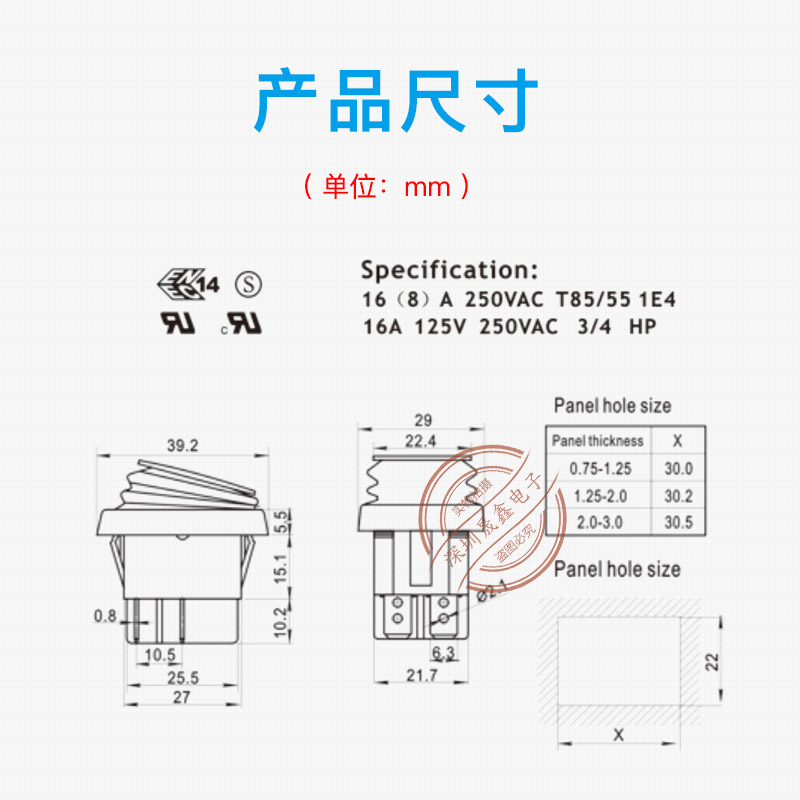 RLEIL waterproof rocker switch RL2 6 foot 2 gear rocker switch 16A250V
