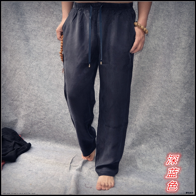 Summer thin section European and American true silk casual pants male style increased code mulberry silk male straight cylinder long pants retro-tide easing