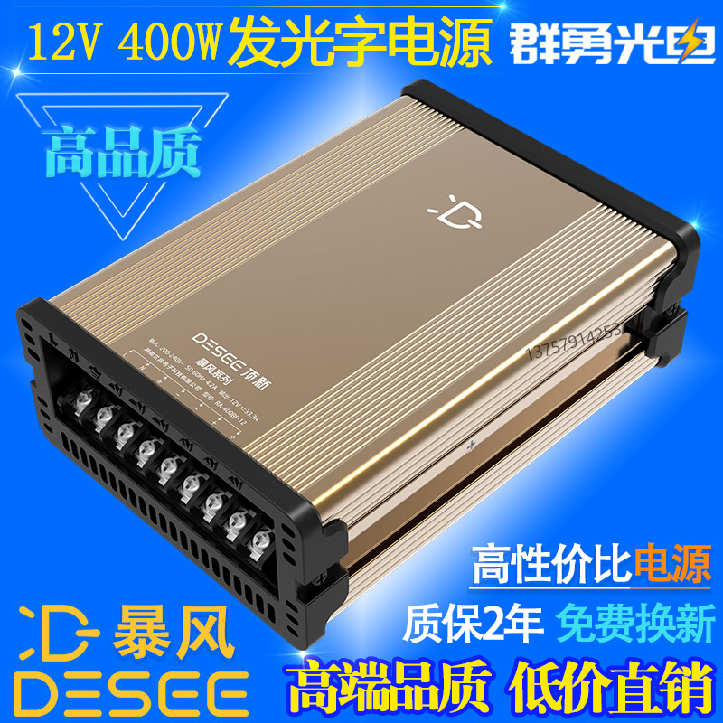 Lan one trillion electronic storm wind 12V400W switching power led luminous character power outdoor rain-proof transformer Valium