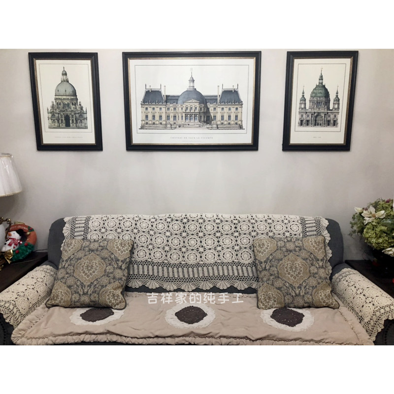Handmade crochet crochet cotton thread lace weaving American tablecloth sofa cover towel 80 wide rectangle beige white