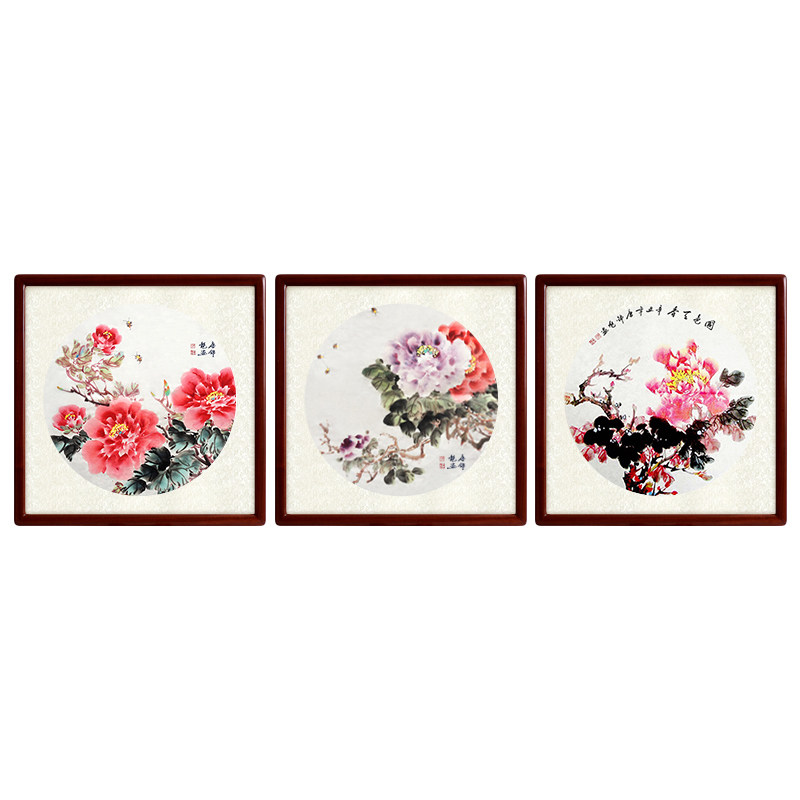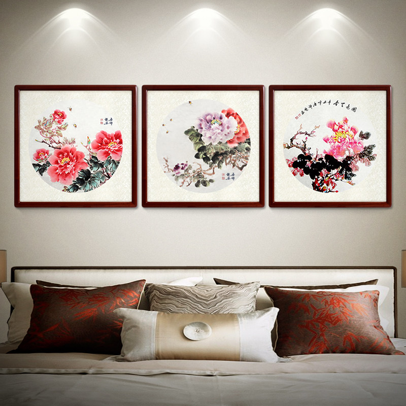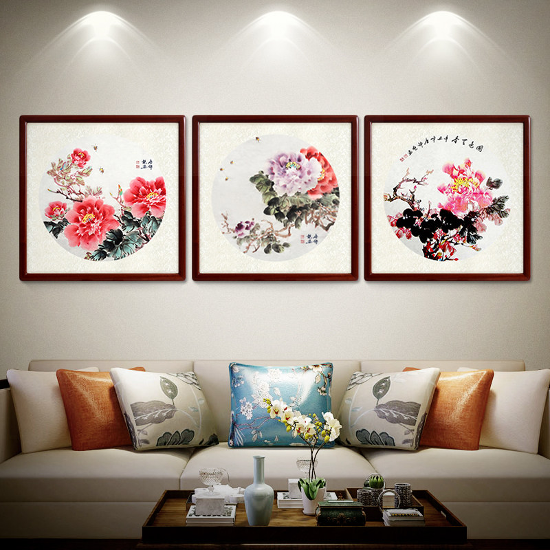 Country Painting Living Room Sofa Background Wall Behind Wall Hung Painting Peony Triptych Modern Minimalist Decoration Painting Flowers Open Rich