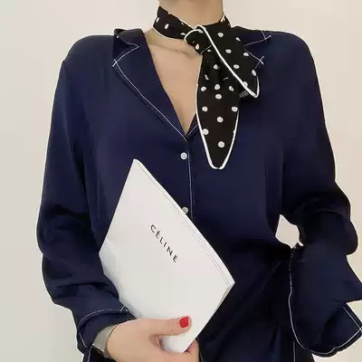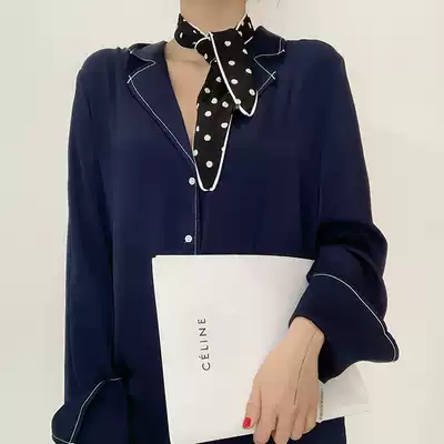 Spring and Autumn New Korean vintage print scarf chiffon small silk scarf bow tie girl headscarf