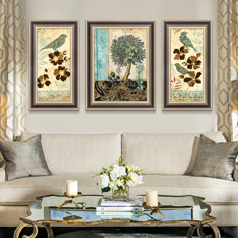 American Hanging Room Decorated Painting Sofa Background Wall Triple Country Vintage Style Frame