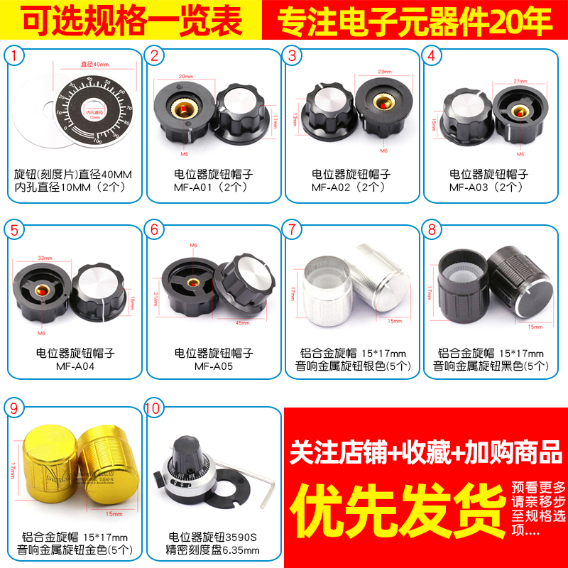 KNOB (SCALE)DIAMETER 40MM INNER HOLE DIAMETER 10MM (2PCS) POTENTIOMETER KNOB CAP MF-A01 (2PCS) POTENTIOMETER KNOB CAP MF-A02