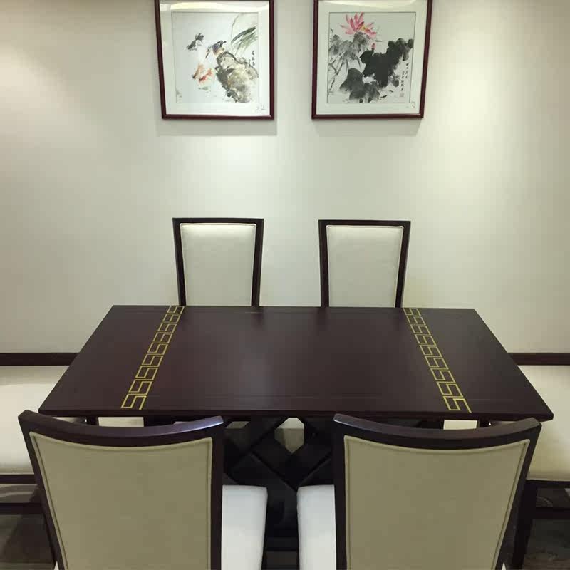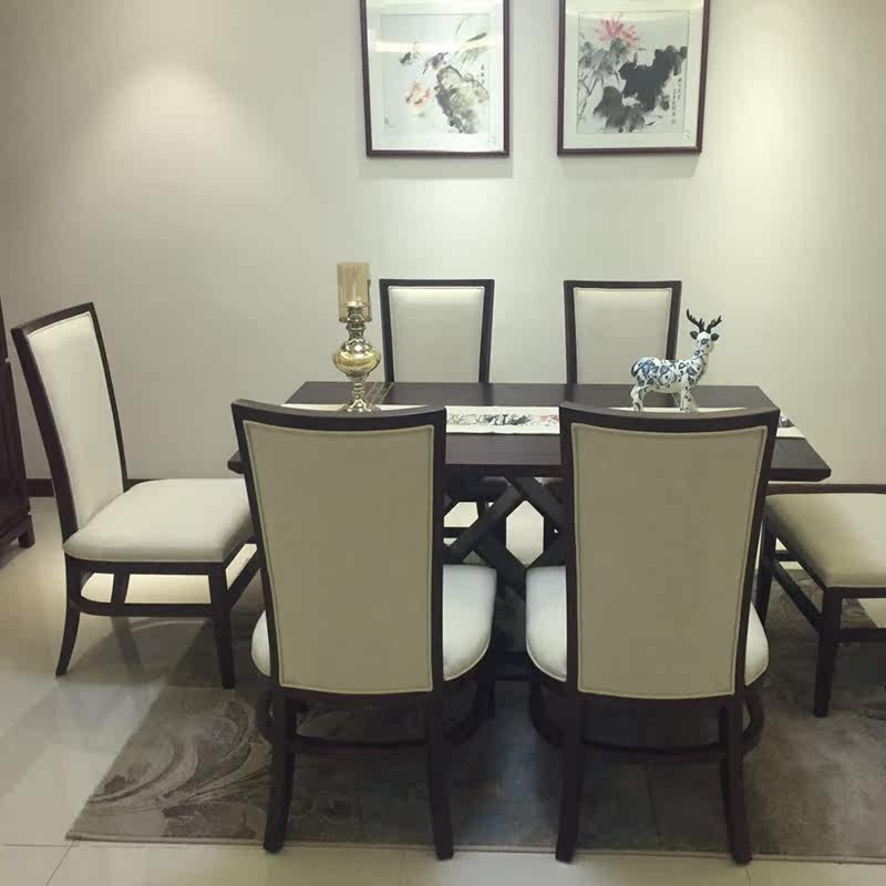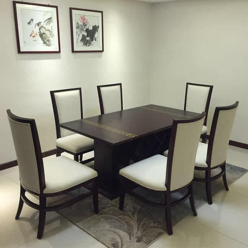 New Chinese solid wood table style board room modern Chinese style 6 people rectangular dining table and chairs dining room combined whole dress custom