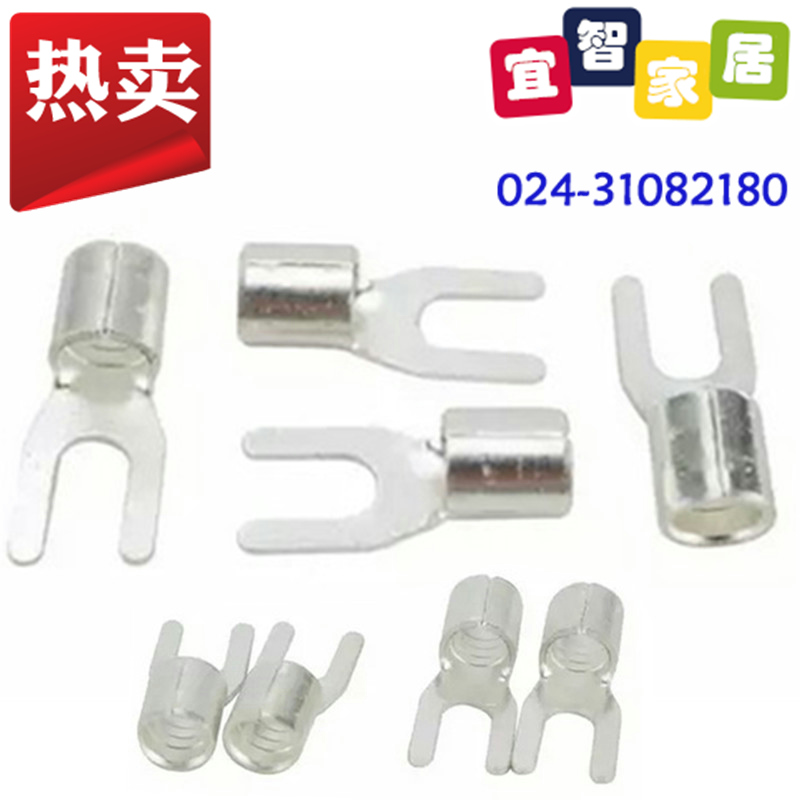 Cold-pressed terminal terminal lug fork brass tinned UT6-5 bare end ut type 6 square M5 screw hole one pack price