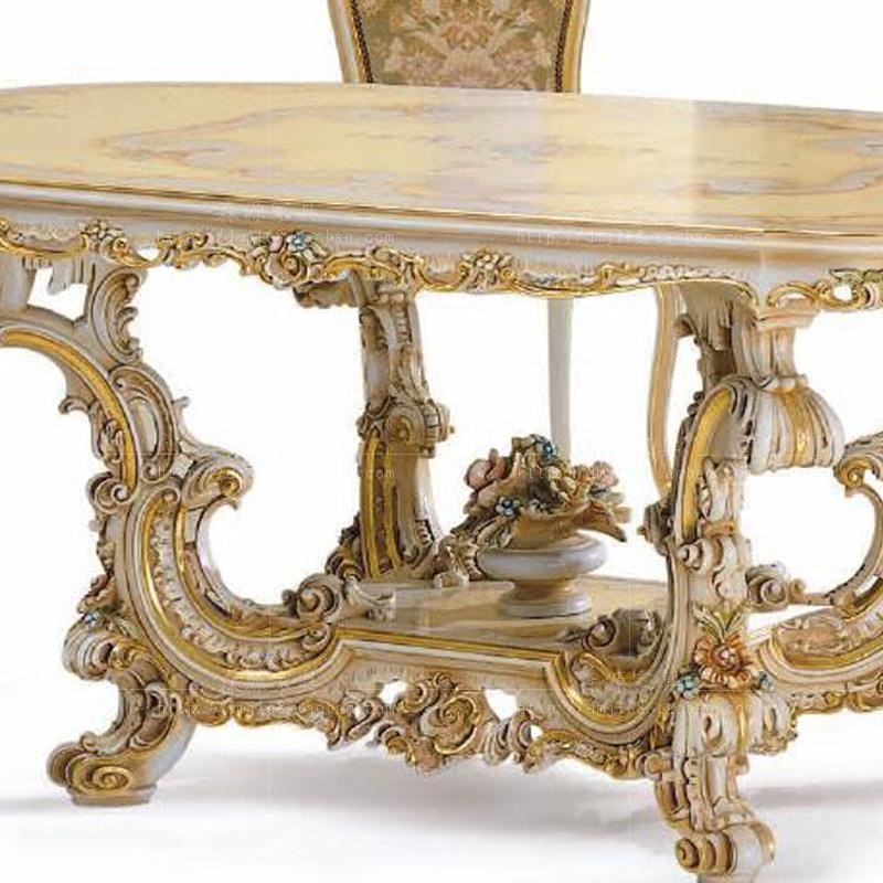 Eurostyle upscale dining table and chairs combine Italy extravaganza solid wood carvings with colorful painted table dining table New classical dining table