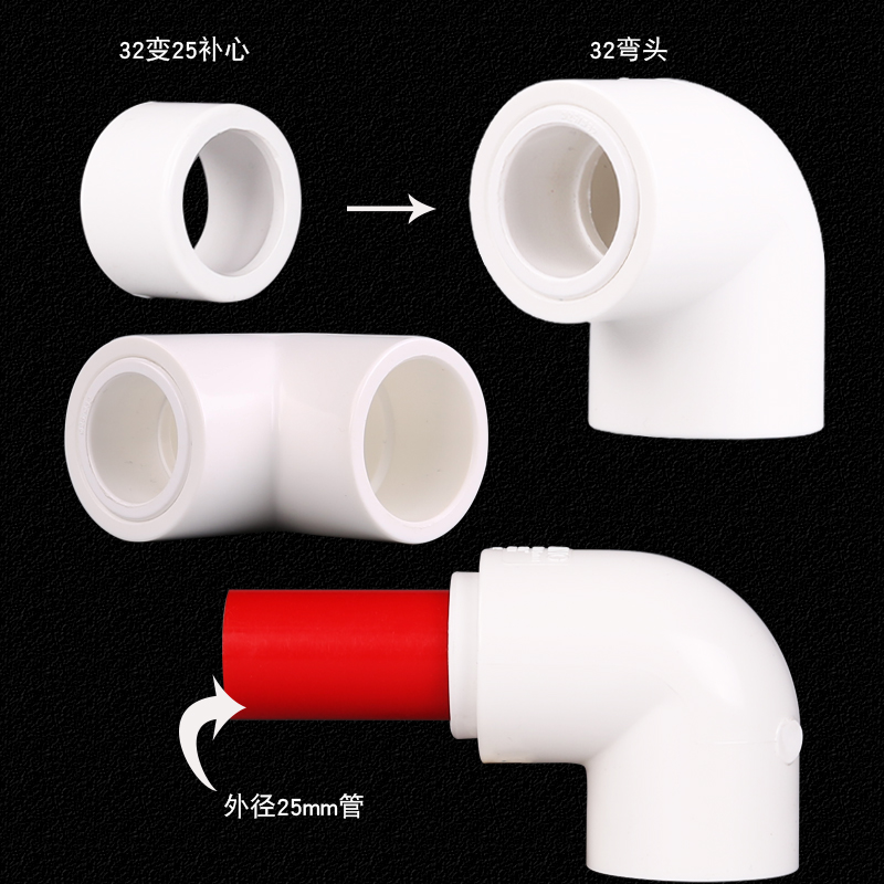 Taiwan three-cent pipe fittings uPVC water-feeding pipe fittings Bushen core replacement diameter inner diameter smaller