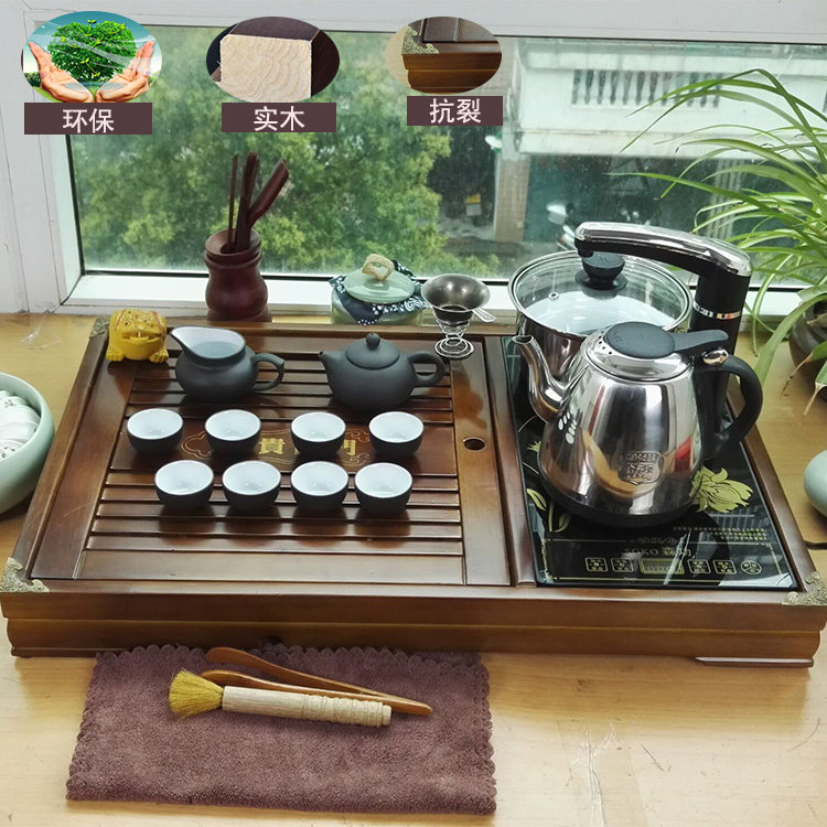 Tea tray Four-in-one induction cooker Automatic tea set Tea tray Household simple tea table Mini solid wood big tea sea