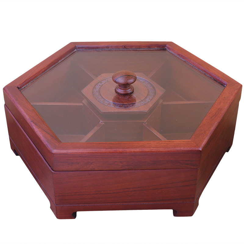 Hexagonal carved fruit box Fu Lushou hexagonal fruit box Transparent cover Burmese flower square plain fruit box Burmese flower octagonal carved fruit box