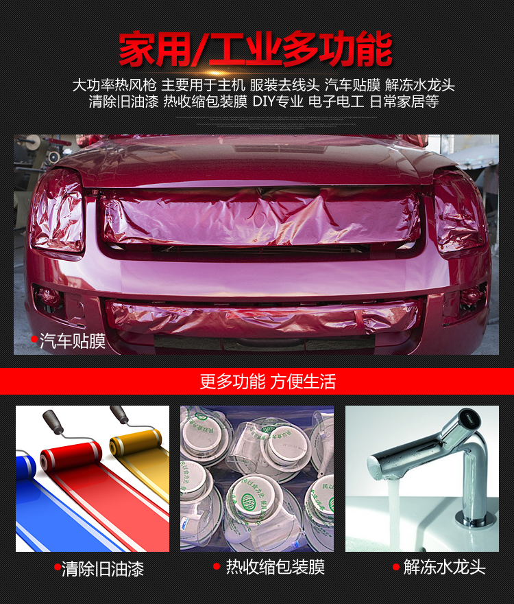 Two-speed thermostat hot air gun Car film baking gun Shrink film baking gun Industrial hair dryer Plastic welding gun