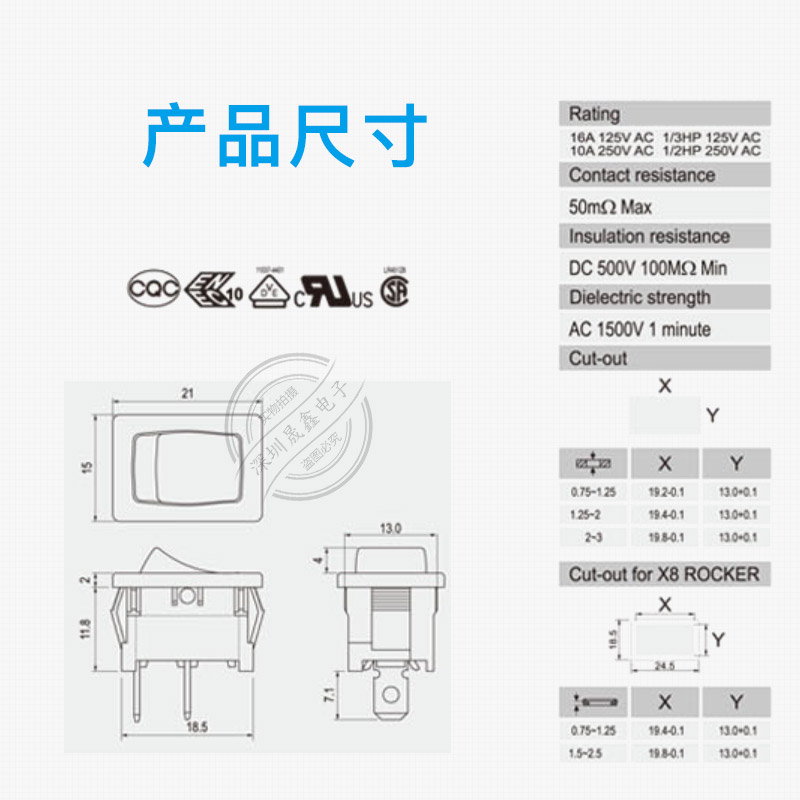 R13-66L Taiwan SCI switch with lamp wane switch 2-foot 2-gear rocker switch