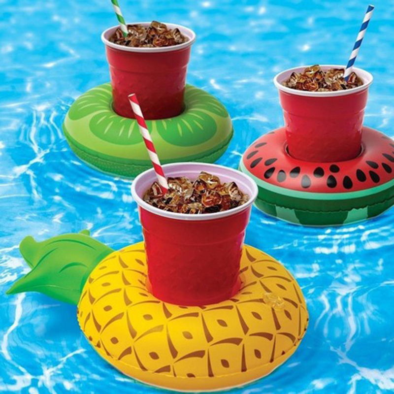 Inflatable flamingo donut cup holder water floating drink cup inflatable watermelon lemon pineapple cup sitting cup holder