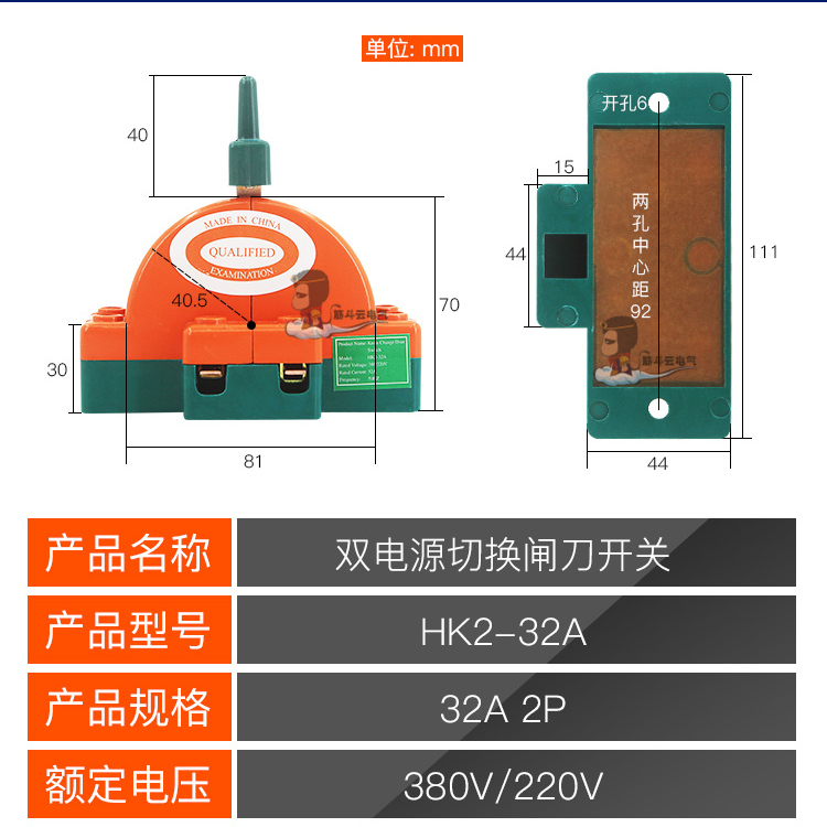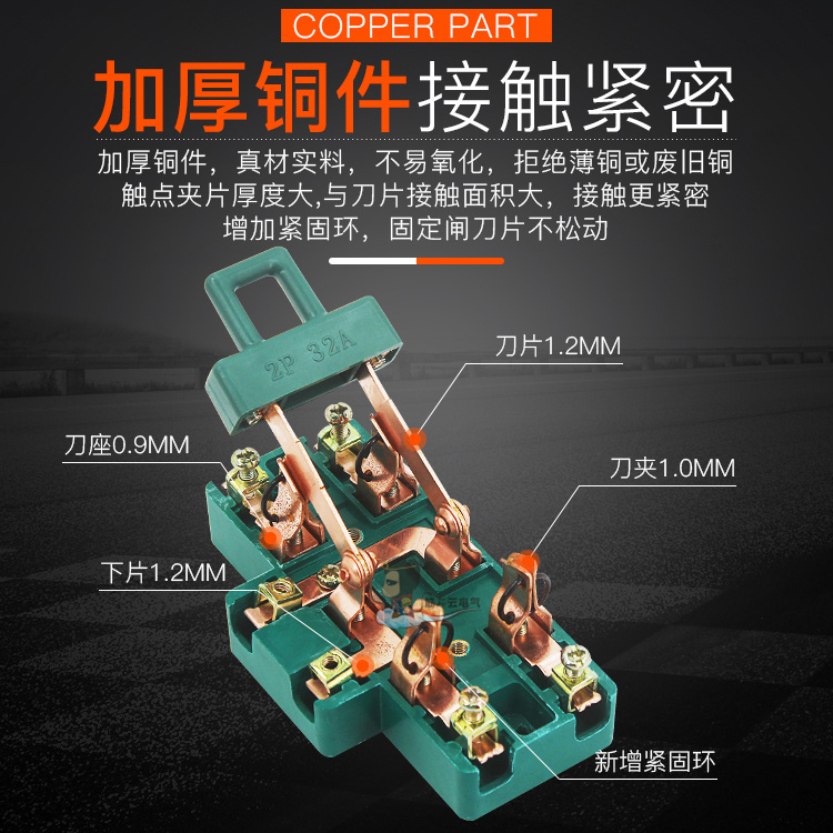 Double throw gate knife king 2P32A reverse switch household two-wire single-phase power switch bidirectional conversion knife gate