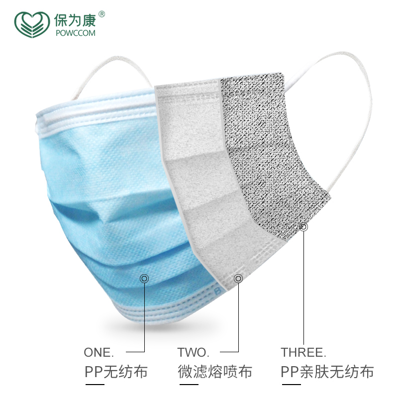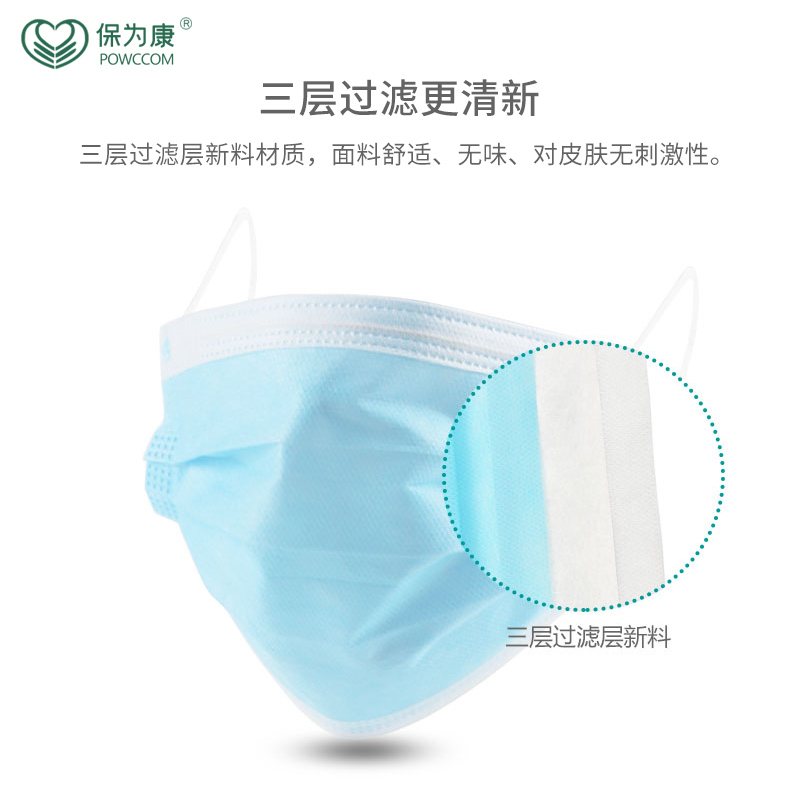 Baoweikang three-layer protective mask anti-droplet dust pollen melt spray cloth disposable adult breathable mask 50