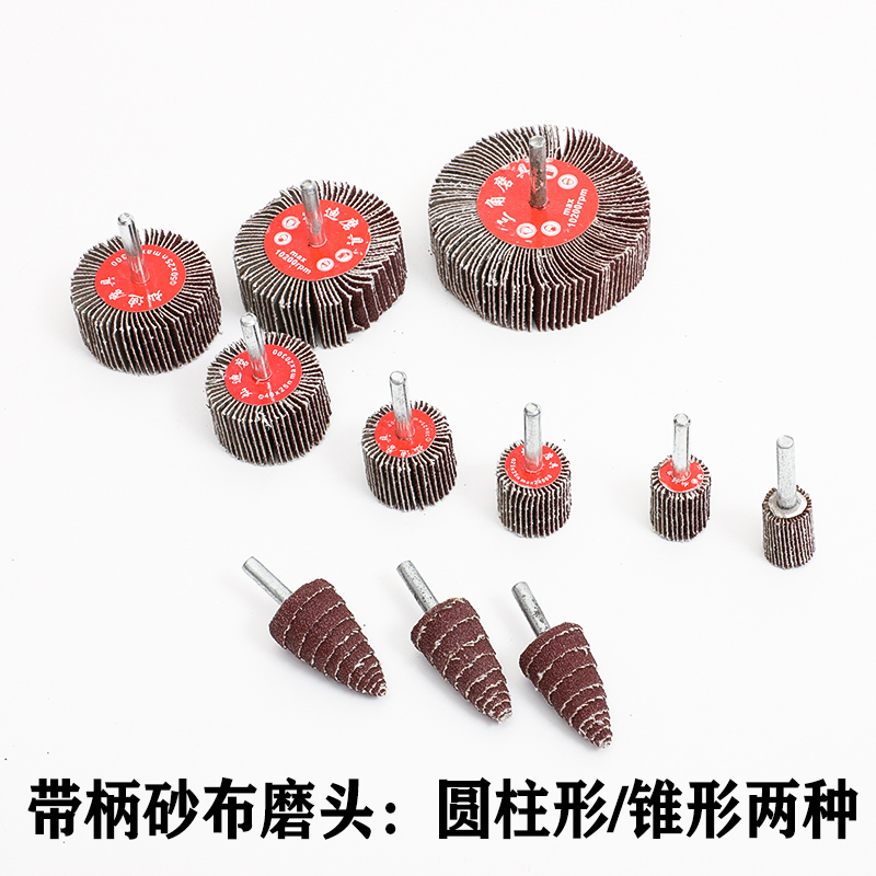 With handle hundred impeller grinding head boutique abrasive cloth wheel sandpaper grinding head grinding polishing wheel metal wood grinding 6MM handle