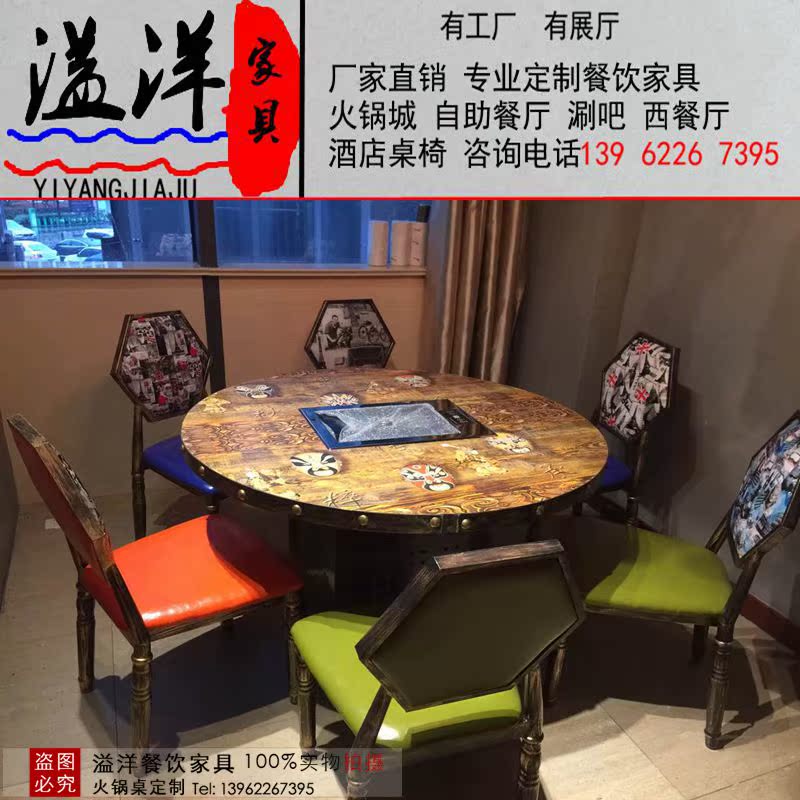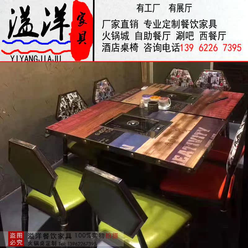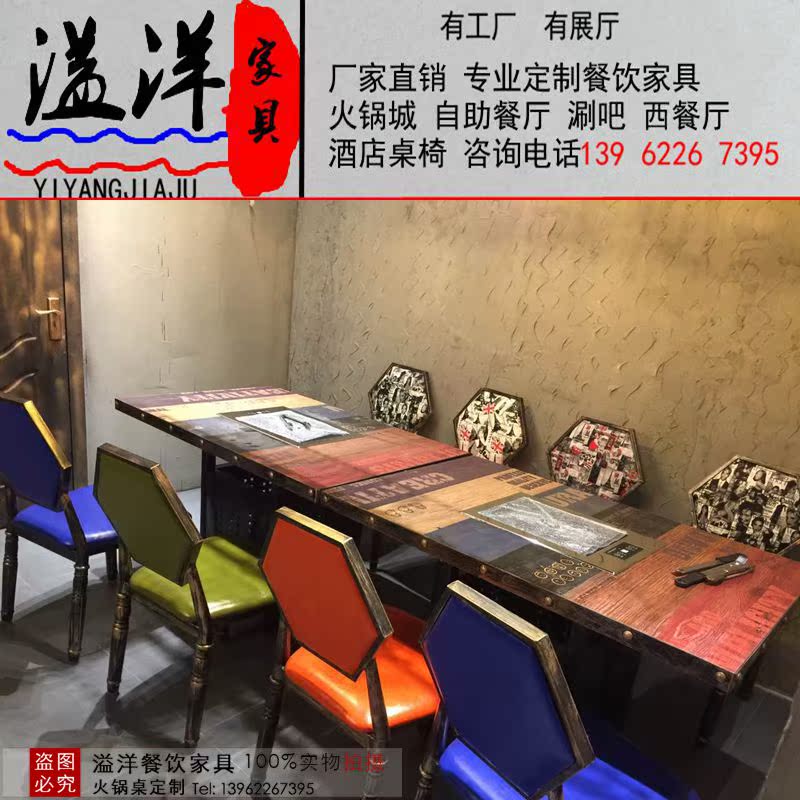 Smoke-free Baking Integrated Table Hot Pot Table Commercial Solid Wood Themed Dining Room Buffet Barbecue Paper Roast Table And Chairs Combination