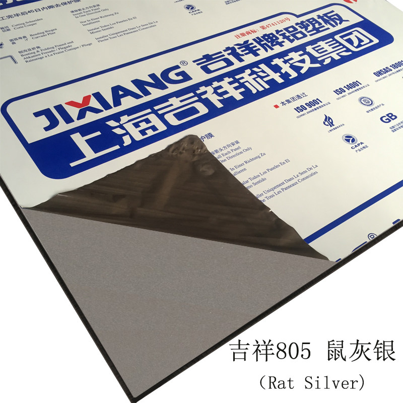 Authentic Shanghai Auspicious Aluminum Plastic Plate 4mm10 Silk Rat Grey Silver Inner wall Advertising door head Dry hanging curtain wall aluminium plastic plate