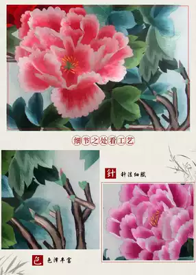 Cantonese embroidery, Chao embroidery, peony flowers, rich, pure hand embroidery, living room, bedroom decoration, wedding supplies, gifts