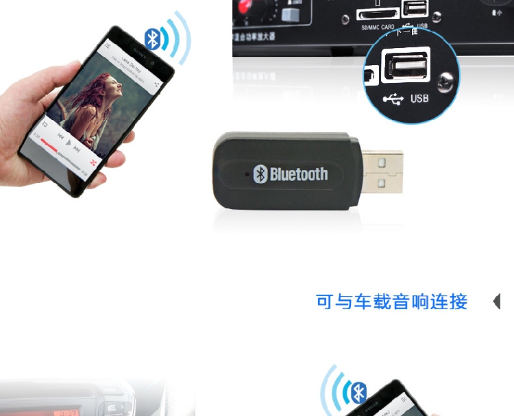 Upgraded USB Bluetooth audio receiver Amplifier Bluetooth adapter to audio Bluetooth stick AUX dual output
