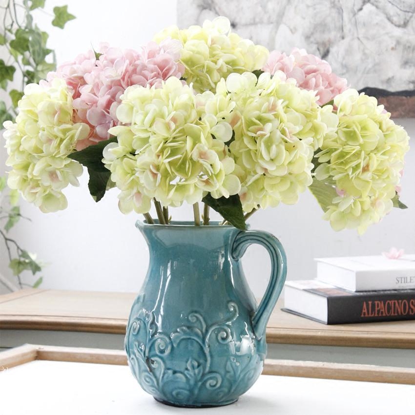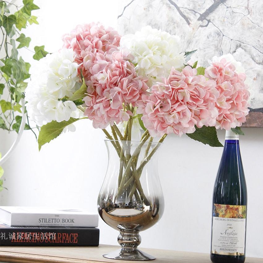 Simulation of two-leaf hydrangea, foreign hydrangea, wedding flowers, home decoration, fake flowers, French soft flower arrangement