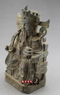 Antique antique collection Pure copper unearthed God of Wealth Buddha statue decoration Bronze statue of God of Wealth Home housewarming Lucky