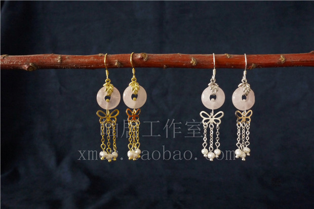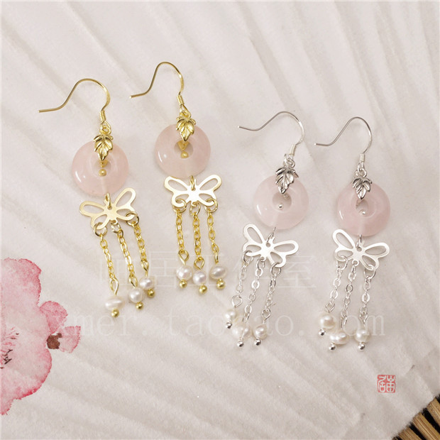 Butterfly Dream Antique Fan crystal 925 silver gold plated Su earring Chinese wedding Han clothing Cos photography accessories ear clip