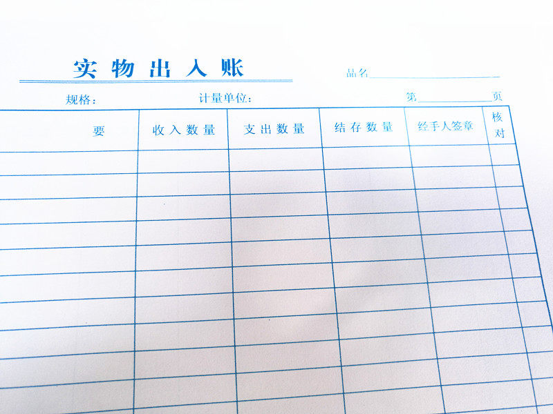 Physical entry and exit quantity ledger 16K inventory ledger 25K commodity entry and exit accounting book