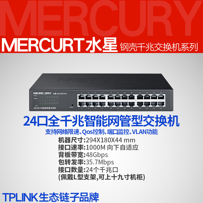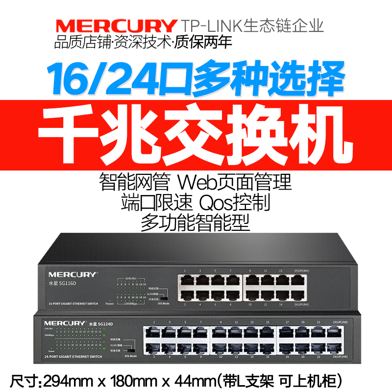 (Quality Shop) Mercury 24-port full gigabit switch 16-kg Gigabit network 48-kg switch network cable speed limit Qos monitoring broadband household enterprise division SG124D