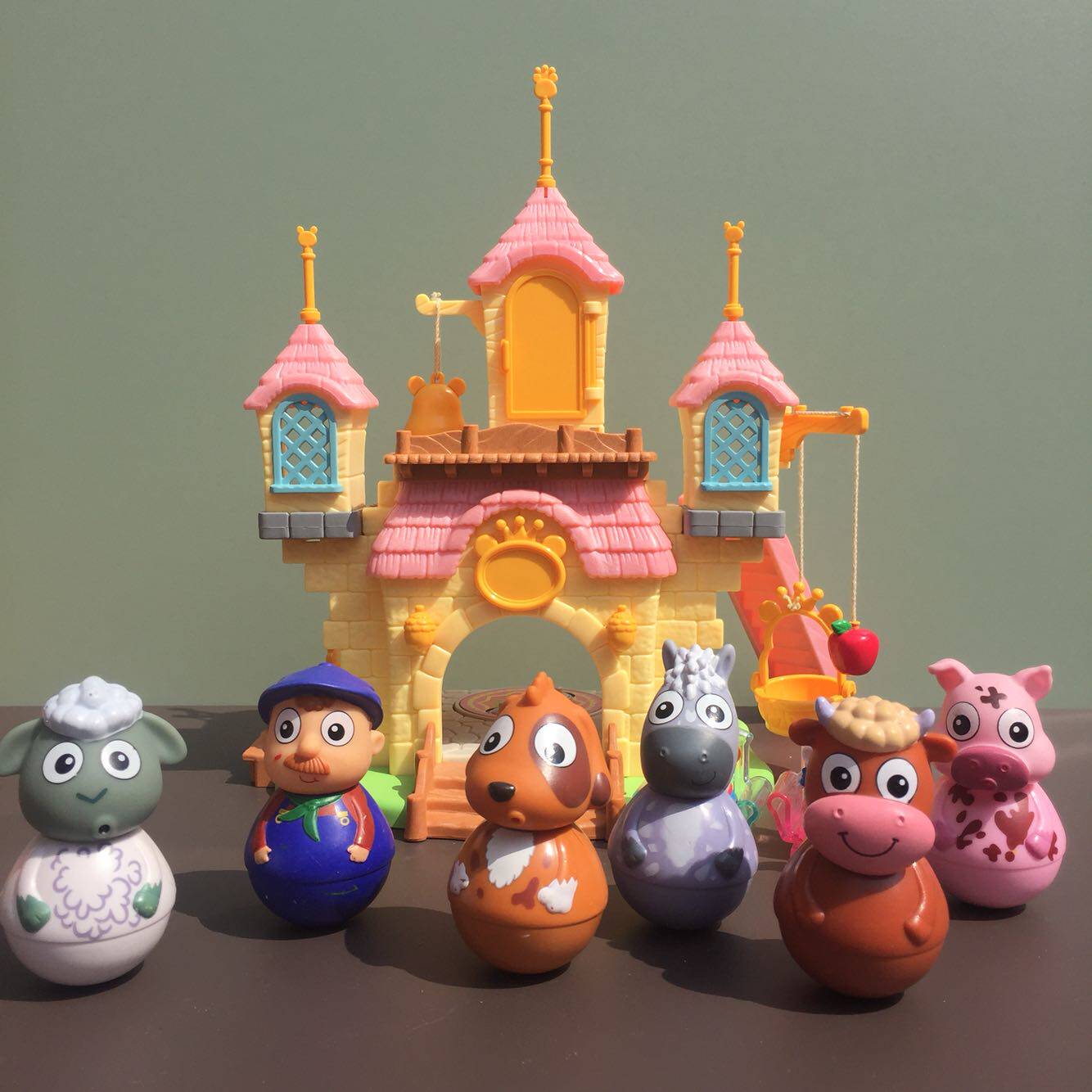 Petch (only the most right red one) George random one (only blue one) PEPPA small cat PEPPA small fox PEPPA Little Black Dog Denny PEPPA Little deer?The farmer.