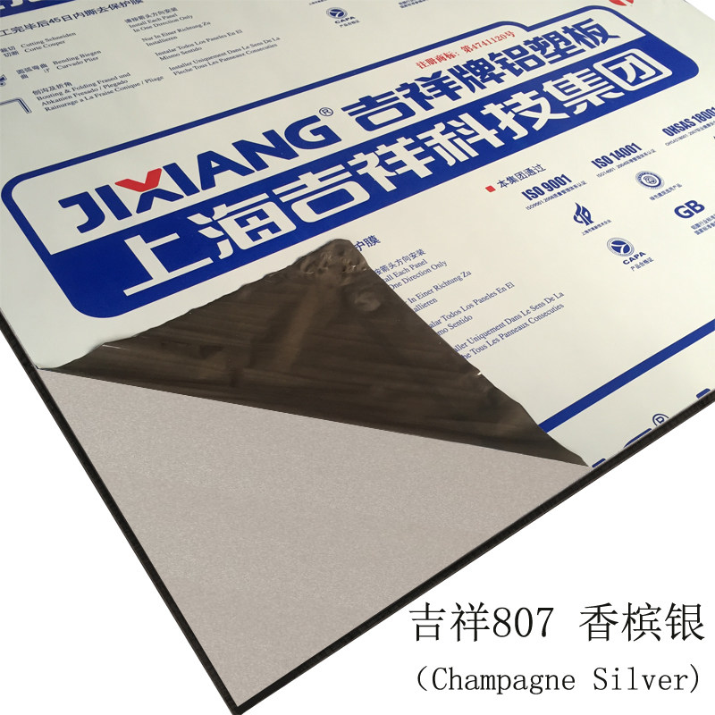 Authentic Shanghai auspicious aluminum plastic plate 4mm12 silk champagne silver inner wall advertising door head dry hanging curtain wall aluminium plastic plate