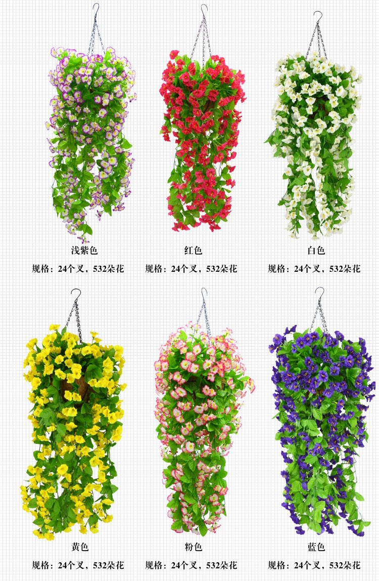 A bunch of pink morning glory wall hanging baskets a bunch of light purple morning glory wall hanging baskets a bunch of red morning glory wall hanging baskets a bunch of white morning glory wall hanging baskets a bunch of yellow morning glory wall hanging baskets a bunch of blue